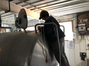 Dairy farmer Bobby Jarrell checking milk levels inside of tank. Photo by Thomas Goyer, QNet News