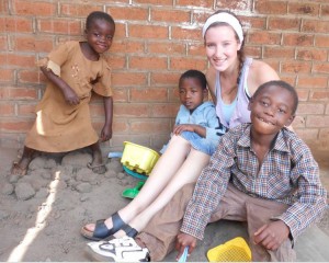 Kailey Lawrence sits with three children, Gifty, Angela and Presca outside of Children of Blessing Trust, a school owned by Lawrence's aunt in Malawi, Africa. The school is designed for children with disabilities whose parents can't care for them.