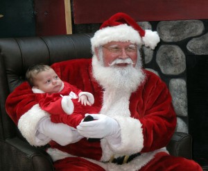 Belleville, ON - Two month old daughter of Amy Ouali gets her first picture taken with Santa Claus. Photo by Trish Allison. By Trish Allison