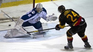 The Bull got goals from Brendan Gaunce and Garrett Hooey. Gaunce netted his 21st of the year on a 5-on-3 power play, while Garrett Hooey scored on a penalty shot with zero seconds left on the clock after being hauled down on a break-away at the end of the second period.