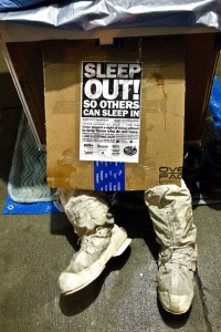 Participants of the fifth-annual Sleep Out! So Others Can Sleep In, a fundraiser for the Hastings and Prince Edward Branch Canadian Mental Health Association, hunkered down in Market Square from Friday night to Saturday morning. The good news for these “homeless” is that in another few hours they would return to their cozy beds while others in Belleville are not as lucky.