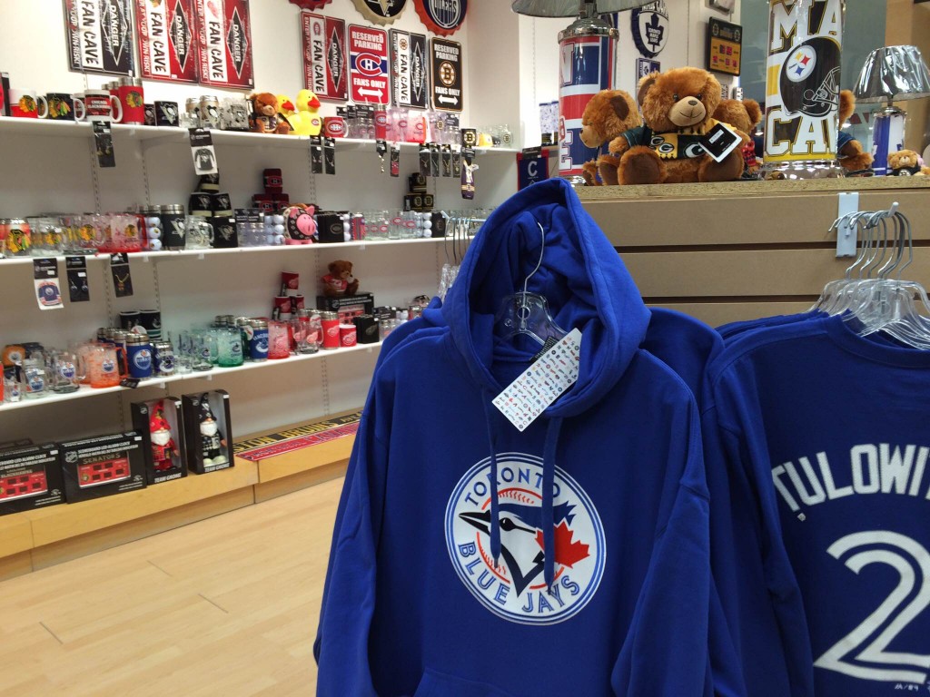 Blue Jays merchandise at the Ultimate Fan in the Quinte Mall was flying off the shelves through the team’s playoff run. Photo by Sean McIntosh