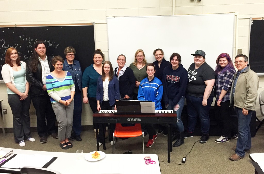Loyalist College’s community choir. From left: Tara Henley, Chris Calwell, Jennifer Abrams, Pam Fairbank, Jodie Mercer, Ashley Clark, Kathy Keenan, Rose Robson, Ashlyn Patterson, Keri Kerby, Meaghan Pocknell, Mary Ellen Morris, Kaylea Moreau and Neil Kerby. Photo by Deanna Fraser, QNet News