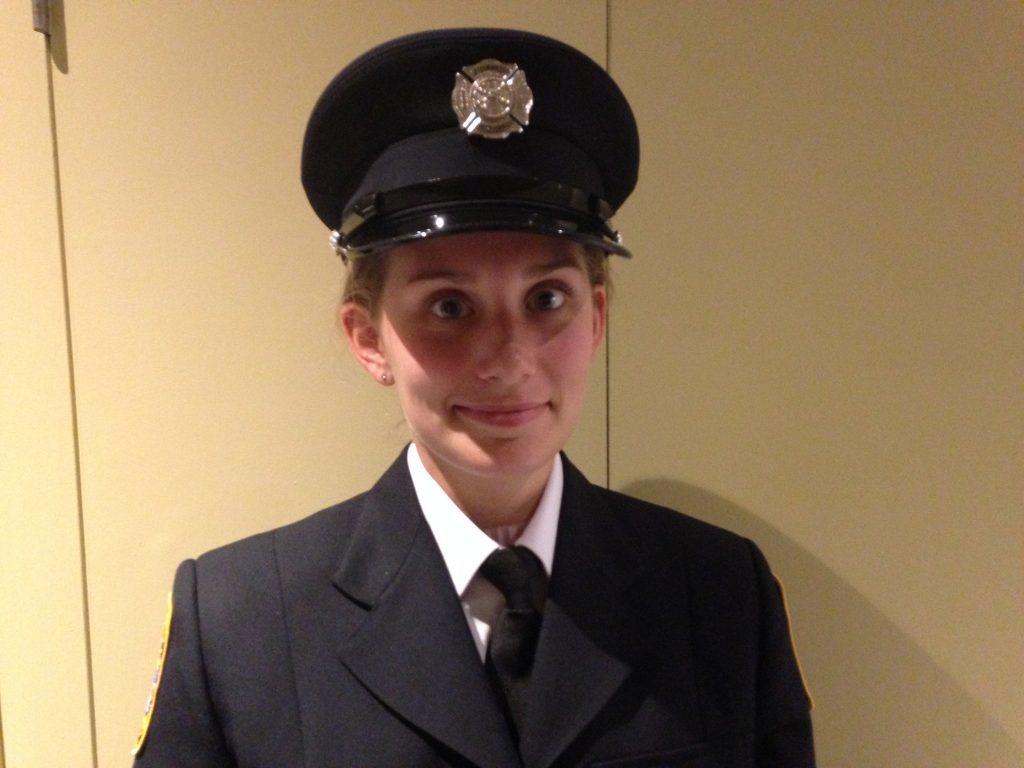 Jocyelyn Brethour was one of six new part-time volunteer firefighters sworn in for Belleville. Photo by, James Gaughan, QNet News