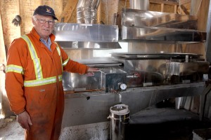 FRANKFORD, On. (17/03/11) - George Patton, a retired school principal, explains the process of boiling down sap to make maple syrup. Patton describes the sugar bush as a hobby that just got carried away. He has been running the Maple Creek Sugar Bush for the past 29 years. Photo by Rebecca Rempel.