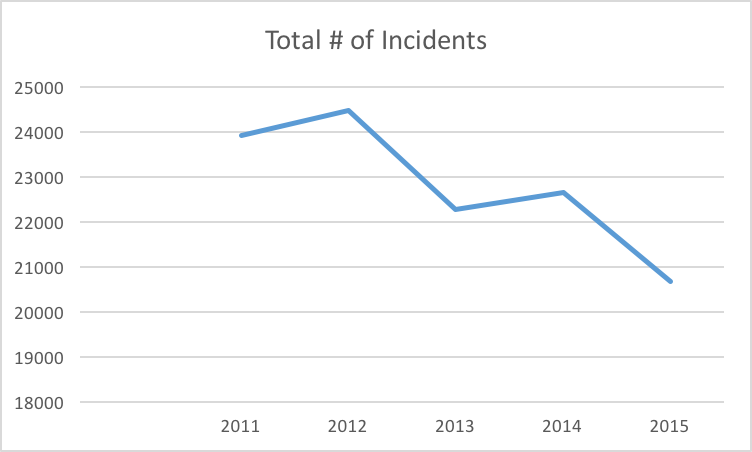 Total number of recorded crime incidents by the Belleville Police since 2011.