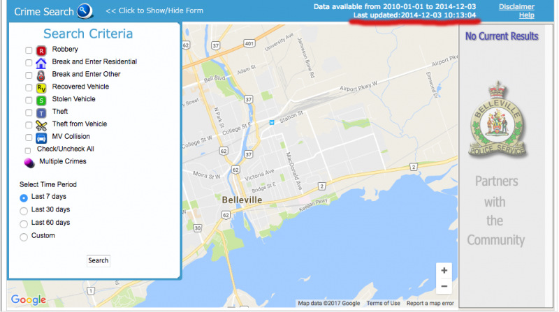 Belleville Police Crime Map – Last updated on December 3rd, 2014