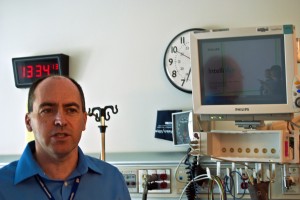 (BELLEVILLE, Ont. 06/14/11) Dr Andrew Samis, lead physician at Quinte Health Care’s Intensive Care Unit, is pushing to get an ultrasound machine for the ICU. The machine would be used in daily procedures, such as finding veins in critically ill patients who need needles. Photo by Ashliegh Gehl