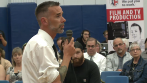 Managing editor of inQuinte.ca Bill Glisky addressing a question at the local news forum at Loyalist college