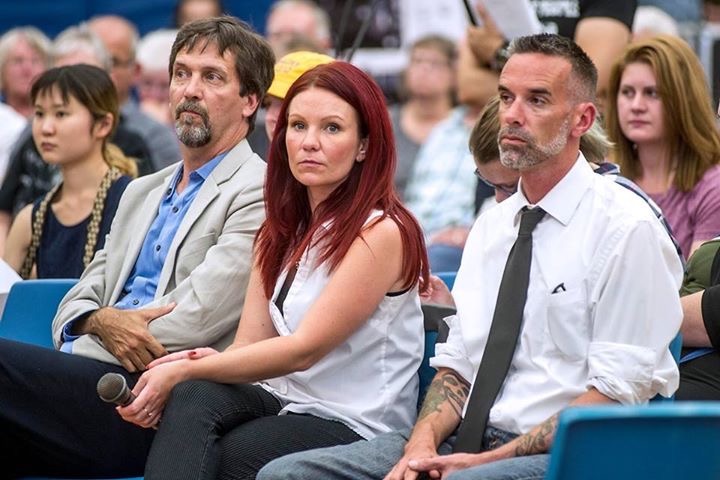 A crowd gathered Monday night at Loyalist College to speak about the issues affecting local journalism in the Belleville area. A panel of local Journalists were at the news forum to field questions from the community . From left to right Bill Glisky, Nicole Kleinsteuber, and Brice McVicar. – Photo by Michael J Brethour Photography