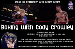 Event at Trent University’s Champlain College featuring boxer Cody Crowley. Photo by Champlain College’s Official Page