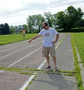 TRENTON, ON (06/07/2011) Duncan Armstrong Physical Education teacher and coach at Trenton High School stands at the finish line at the schools track. The school started Trackfest May 2010 in replace the depilated track. Kraft Celebrations tours has selected the project as one of their 20 semi finalists. Kraft offers $25,000 to the top 10 finalists. Photo by Linda Horn