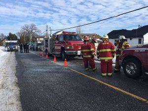 Firefighters in front of the remains of 133 Harbour St. in Brighton, where two people were killed in a fire Wednesday morning. Photo by Jessica Clement, QNet News