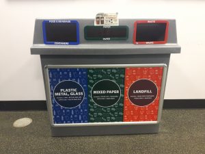 The Tri-Bins around Loyalist College make it easy for students to recycle and understand what waste goes into which bin. Photo by Becky McMullen, QNet News