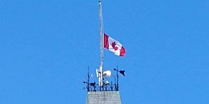 The flag at Belleville City Hall was lowered Wednesday to express support for the victims of Christchurch and the Muslim community in Belleville. Photo By Kyle Ellington, QNet News