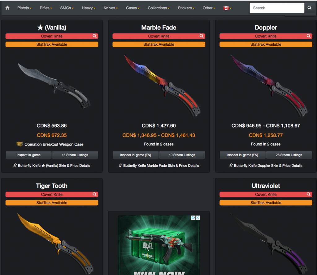 In the game Counter-Strike: Global Offensive, knives are rare items and cost the most to buy. Photo by Kyle Ellington QNet News