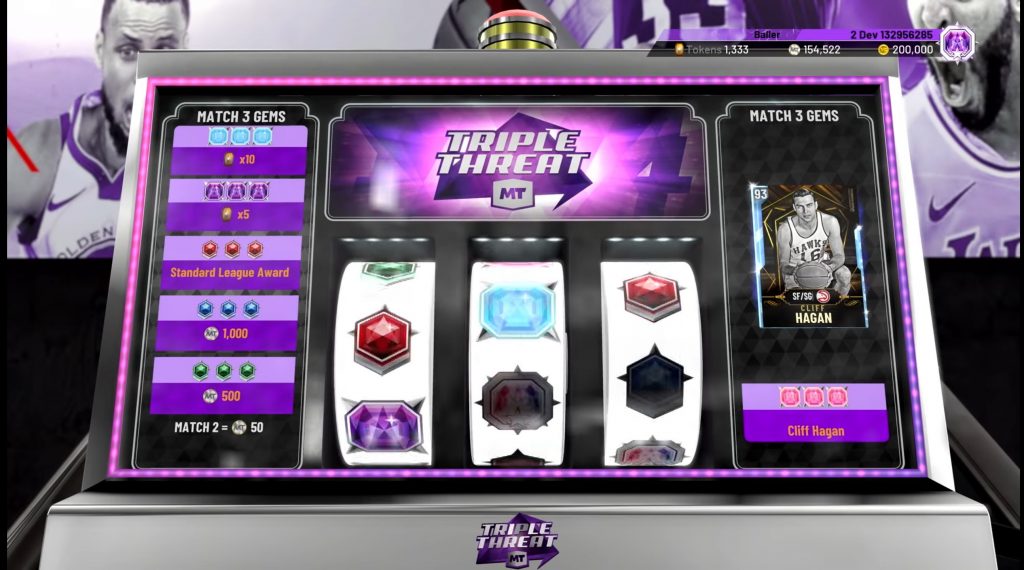 The latest version of the NBA 2K game includes a slot machine. Some people worry that this is a bad influence on young players. Photo from NBA 2K