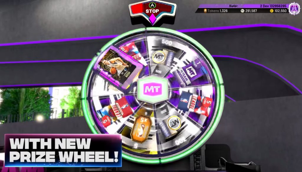 A prize wheel for game rewards in NBA 2K. Photo from NBA 2K