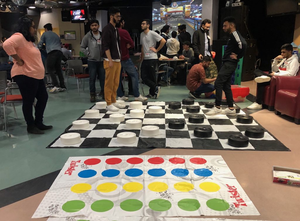 Candidates for the new student government at Loyalist College got to introduce themselves to other students while playing giant board games on Wednesday. Photo by Logan Somers, QNet News