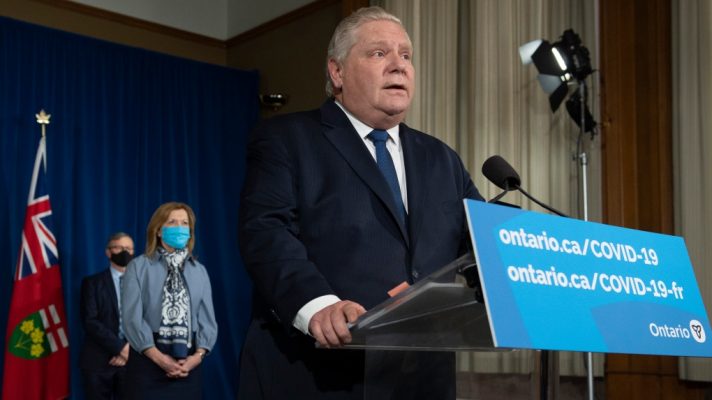 Ontario Premier Doug Ford announcing a state of emergency on Jan. 12, 2021, at Queens Park. Photo by Fran Gunn, The Canadian Press