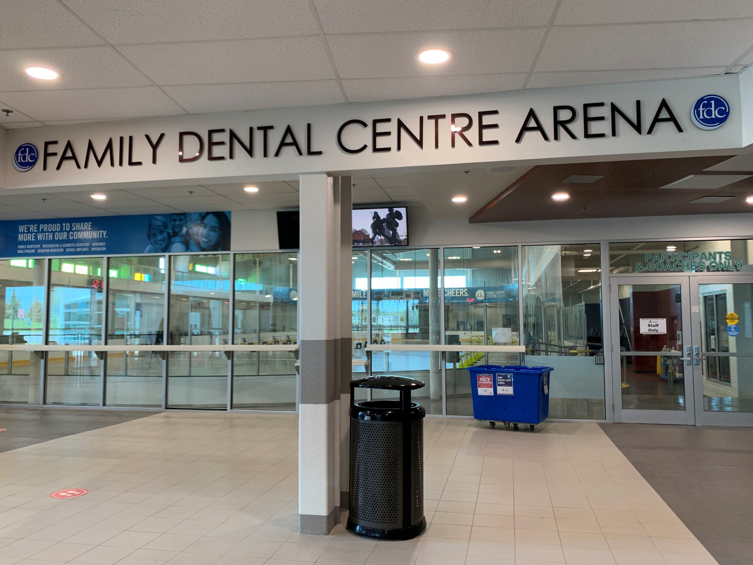 The large space in the arena allows for the implementation of a new ‘hockey hub’ model in which patients can remain in one place for both vaccination and observation.