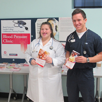 Students in the Brock University/ Loyalist College collaborate Bachelor of Science in nursing program were in the college’s Link Lounge taking people’s blood pressure Monday.