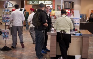 BELLEVILLE, Ont. (16/1/12) - Students embrace the changes made to the cafeteria on Monday, Jan. 16, 2012. The new hours mean that the cafeteria will be open until 6:30 p.m. as opposed to its previous closing time of 3 p.m. The changes also mean that Subway will only be open until 3 p.m. after previously being open until 8 p.m. Photo by Andre Lodder.