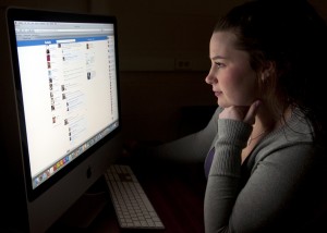 BELLEVILLE, Ont. (16/01/12) - Pre-health student Cheyenne Snider browses on Facebook at Loyalist College on Monday, Jan. 16, 2012. Most students procrastinate by going on social network websites and/or watching television. Photo by Manuela Garay-Giraldo.