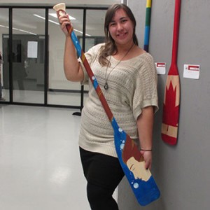 For the exhibit, students of the art & design foundation Ontario college certificate program were given a canoe paddle and told to take whatever creative license they wanted with it. Results ranged from Canadian flags to lizards to wax covered Dia De Los Muerte-esque bones.