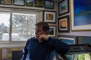 He began painting in his spare time near the end of his 48-year career in Toronto as an architect. He paints now on a covered porch in his backyard, and in a spare room in his small house in Belleville.