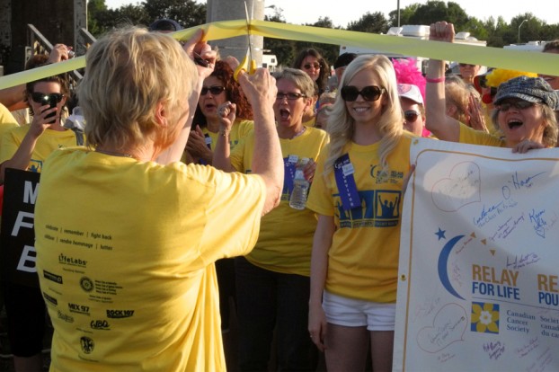 The event featured 63 teams walking around the Loyalist College track and participating in various events over a 12-hour period, starting at 7 p.m. Participants say the event commemorates those who have been lost to cancer, as well as those who have survived it and are still fighting it. Teams work to fundraise as much money as they can to help find a cure for the disease.