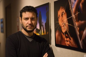 BELLEVILLE – Daniel Casares Roman with some of the photographs in his show Human Color. Photo courtesy of Daniel Casares Roman