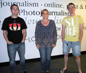 BELLEVILLE – (from left to right) Bevan Hamilton, Suzanne Coolen, and Greg Murphy worked this summer on the Municipal Election Project. They will be back in the fall with their classmates to start the second part of the project. Photo by Samantha Hein.