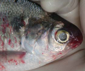 A shad shows signs of viral hemorrhagic septicemia. Photo courtesy of http://en.wikipedia.org/wiki/Viral_hemorrhagic_septicemia