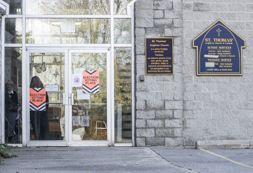 Voters at the polling station inside St. Thomas’s Anglican Church on Church Street Monday afternoon. QNet News has coverage from municipal-election races in Belleville, Quinte West and Prince Edward County throughout the evening. Photo by Candice-Rose Gagnon