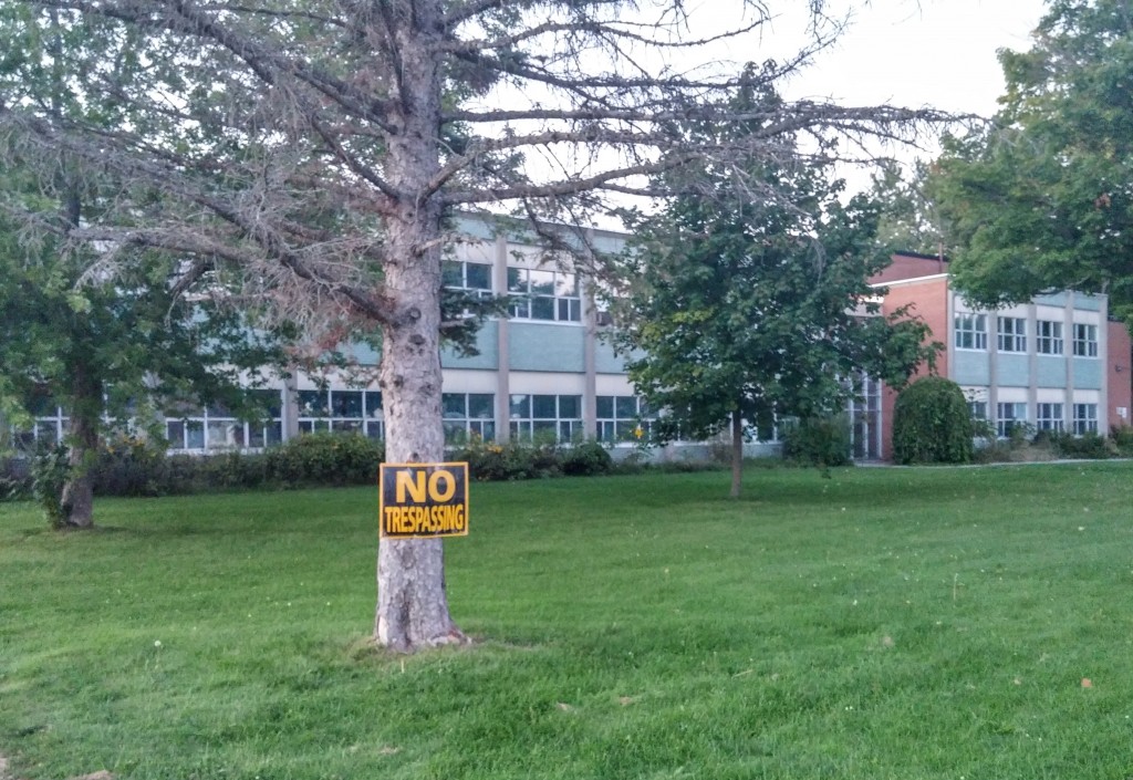 STIRLING – The former Junior School in Stirling has recently gained No Trespassing signs as new owners take control of the building. Photo By Emma Persaud, QNet News