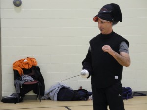 BELLEVILLE – Rob McFadden, who coaches the Loyalist Fencing Club, takes a breather during practice. Photo by Buckley Smith, QNet News