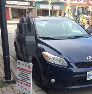Signs in downtown Belleville, Trenton and Picton over the holidays invited motorists to feed the meter to support the food program for local schools. QNet News File Photo