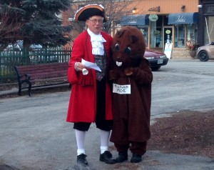 Stirling’s town crier announces Mill Pond Moe’s spring prediction on Groundhog Day. Photo By Emilie Quesnel, QNet News