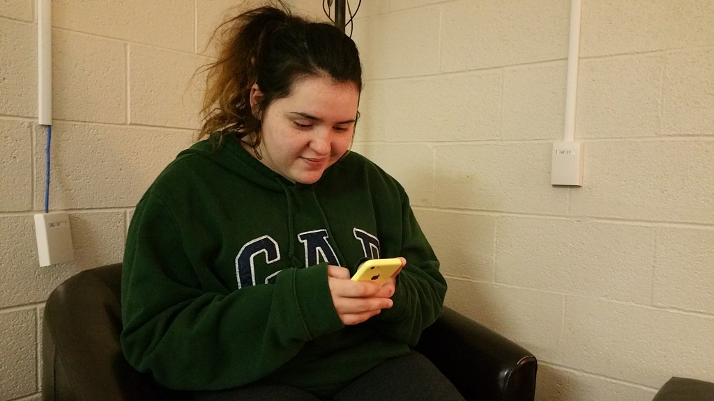 Emily LaFleur uses her cellphone to get breaking news from social media and from family. Photo by Candice-Rose Gagnon