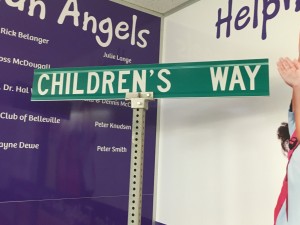 A “Children’s Way” sign was used at Saturday’s Quinte Children’s Foundation Guardian Angel Gala as a decoration and is now set up inside the foundation’s offices on Dundas Street West in Belleville. Photo by Brock Ormond, QNet News