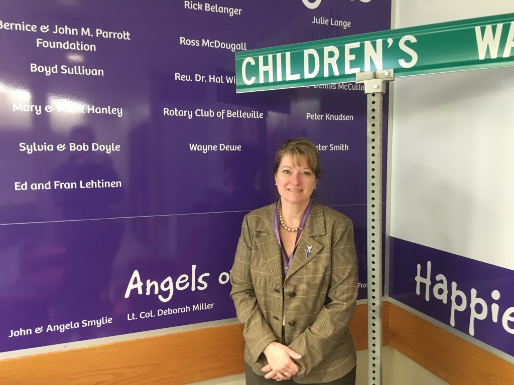 Quinte Children’s Foundation executive director Connie Reid in front of the wall that bears the names of all past Guardian Angels Awards winners. Photo by Brock Ormond, QNet News