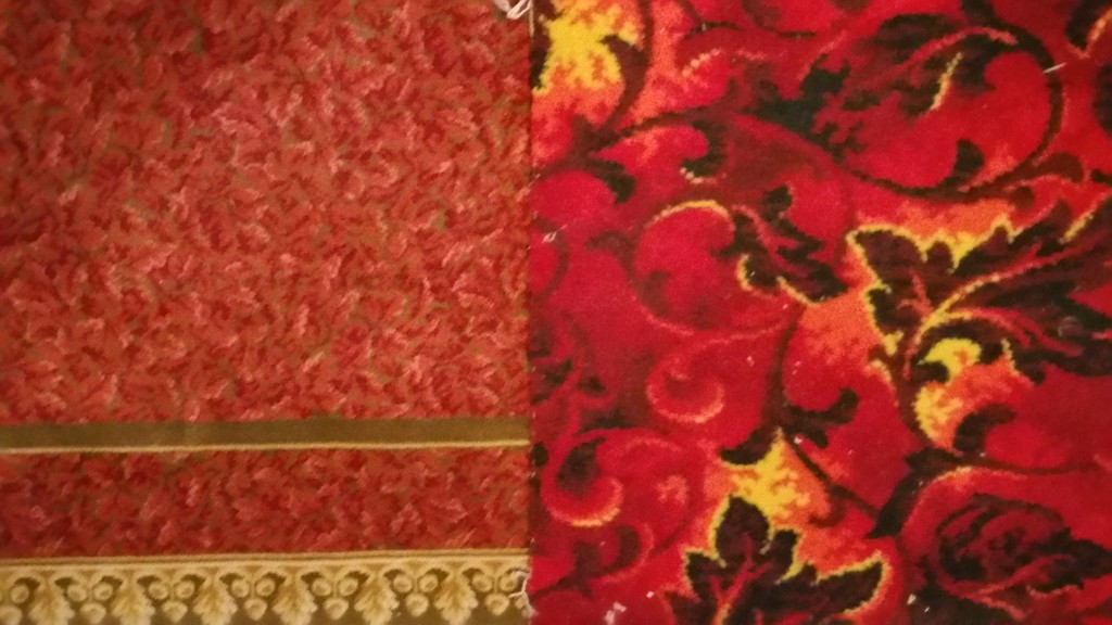 The old carpet on the right, compared to the restored carpet, on the left. Photo by Jaykob Storey.