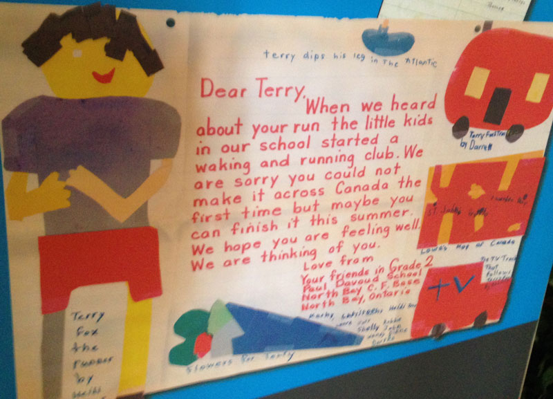 The Belleville exhibit includes a letter that Terry Fox received from a Grade 2 class in North Bay, Ont., after he had to stop his cross-Canada run when his cancer came back. Photo by James Gaughan, QNet News