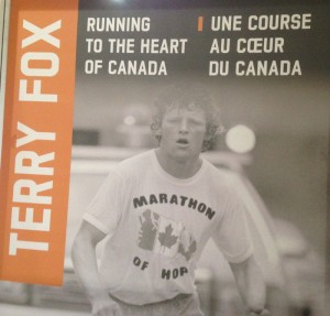 The display features photographs, interviews, press clippings and journal entries from the Marathon of Hope, Fox’s attempt to run across Canada in 1980 to raise awareness about cancer and money for research.