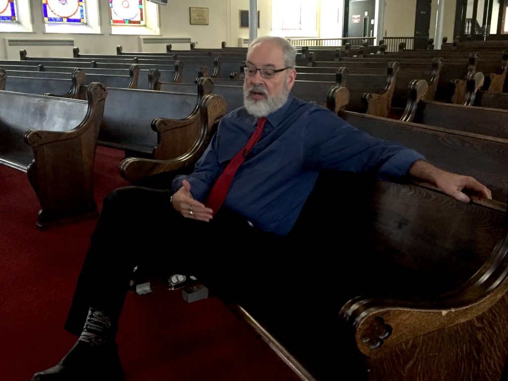 Rev. David Mundy, the lead minister at Bridge Street United Church, talks about his life as a minister. Photo by Alana Pickrell, QNet News