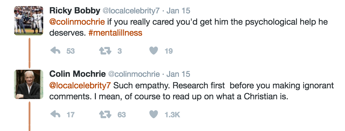 But not everyone was supportive. A few Twitter users had left comments on Mochrie’s post that he said were both ignorant and uneducated.