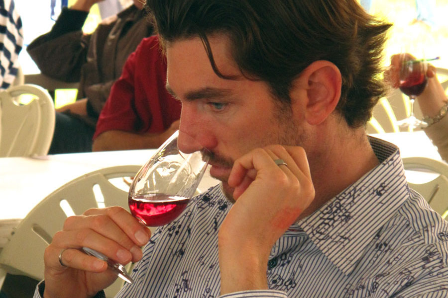 Wine testers are taught to sniff and swirl the wine to let the aromas mix and mingle and then sniff again during a wine tasting seminar. Photo by Nicole Kleinsteuber