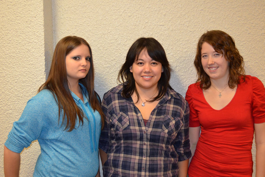 Left to right Shawnee Rocchetti, Melissa Lemaire and April Lawrence are the three judges for the Movember contest held on November 30, in the newsroom.