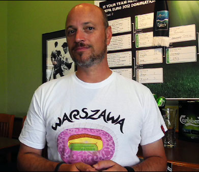 BELLEVILLE (28/06/12) Mitch Panciuk, owner of the Belleville Boston Pizza and Euro Cup soccer fan, went to Poland to see live Euro Cup games. Photo by Kristen Oelschlagel.